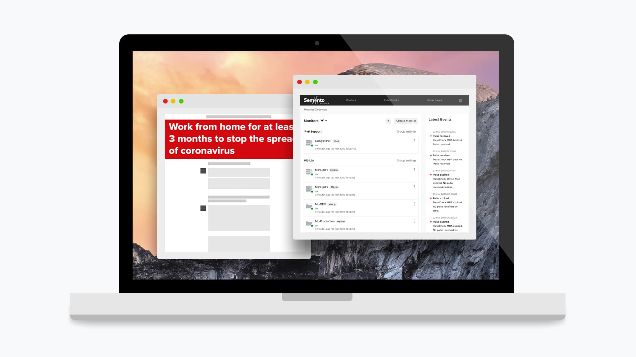 Voor wie ons nog niet kent: Semonto is een online tool die je website of server 24/7 in de gaten houdt. Wanneer er een probleem is, ontvang je direct een bericht in je inbox. Zo kun jij het probleem oplossen voordat iemand anders het merkt en, nog belangrijker, voordat je klanten afhaken. Zo kun jij je in alle gemoedsrust bezighouden met het runnen van jouw bedrijf.