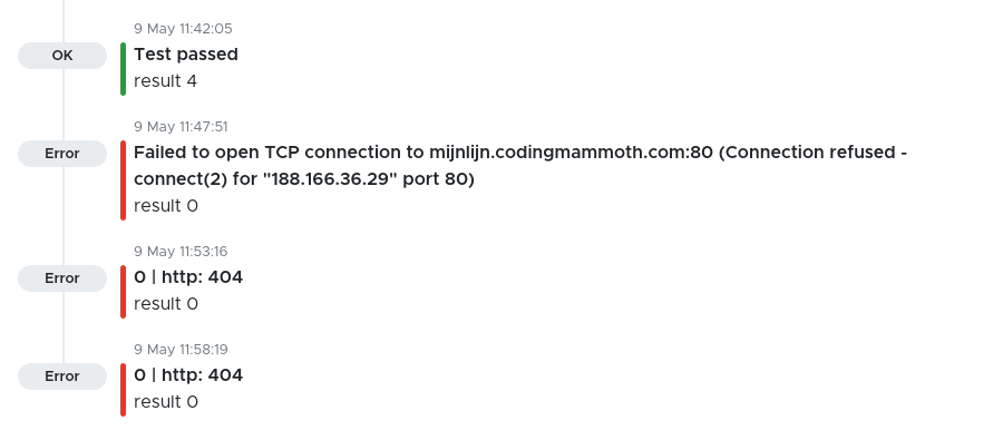 This one is very similar to the previous one. However, the error is at a different level. If you enter a domain in the Semonto dashboard, it needs to be translated back to the IP of your server. This process is called DNS resolving. If this DNS resolving fails, this error will appear: 'Hostname not known'. This error can originate the DNS server of your hoster, but also on a different DNS server like the DNS servers Semonto is using. Semonto always verifies tests by rerunning them on servers with a different geographical location. Only when both tests fail, an alert will be sent out. This reduces the number of false positives and local DNS issues.