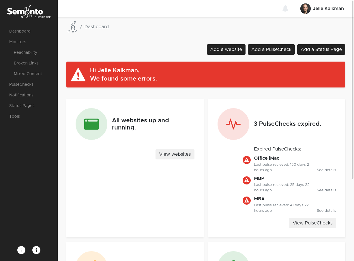 When you log in, you get an overview of all the sites that you are monitoring.