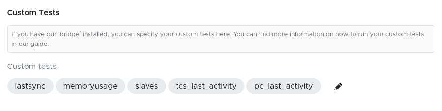 When you are monitoring a server, you might want to measure some more advanced parameters, such as the server load, database accessibility or memory usage. This is information that is usually not publicly available, so we need to build a ‘bridge’ to get to this information in a safe way. To do this, you will need to install a small web application and give us its URL. You only need to do this when you want to perform extended or custom tests.