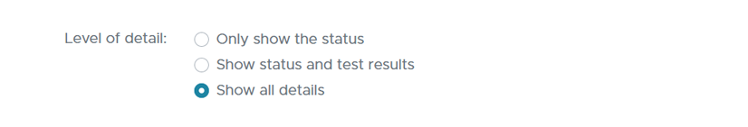 If you are going to use the page within the company to improve the communication between teams, you can select the third option. It allows the most detailed view and shows the current status, the performed tests and also the test values, such as the specific load of the servers, the response times and so on.